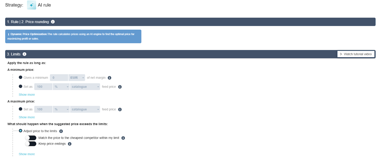 If you work with different brands or product groups that have different minimum price limits, create separate AI rules for each group.
