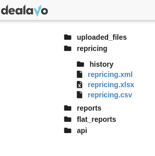 • XML, CSV i XLSX - generowane na żądanie przy każdym pobraniu po API dedykowanym adresem URL, np. http://app.dealavo.com/files/repricing/repricing.xlsx?account_id=[Twoje ID konta]&api_key=[Twój klucz API]. Jeśli w repricingu wprowadzono zmiany, będą widoczne od razu.